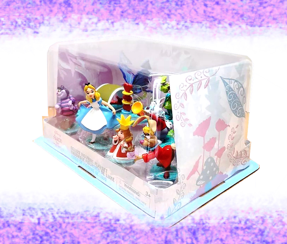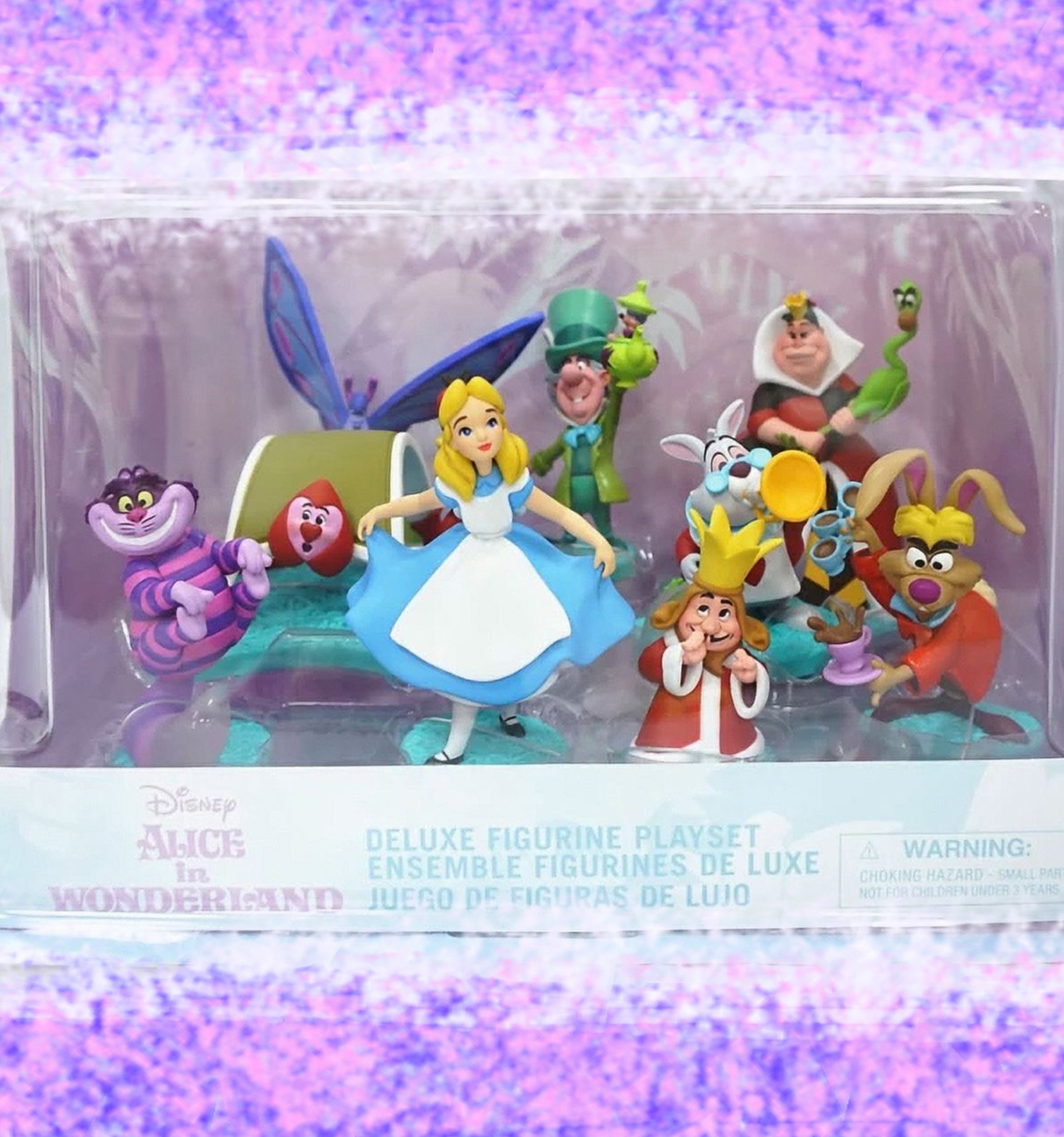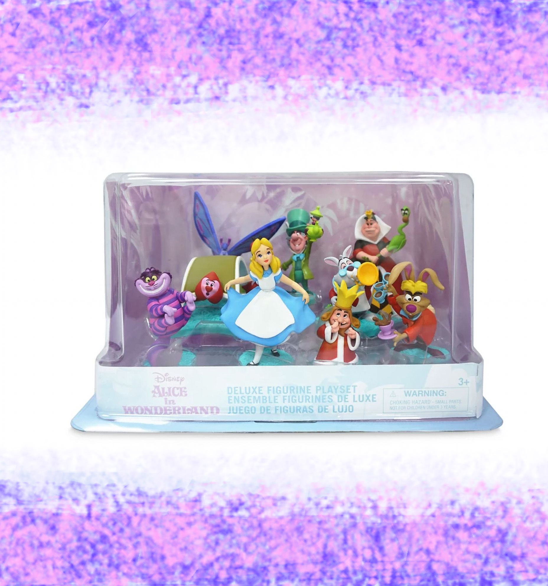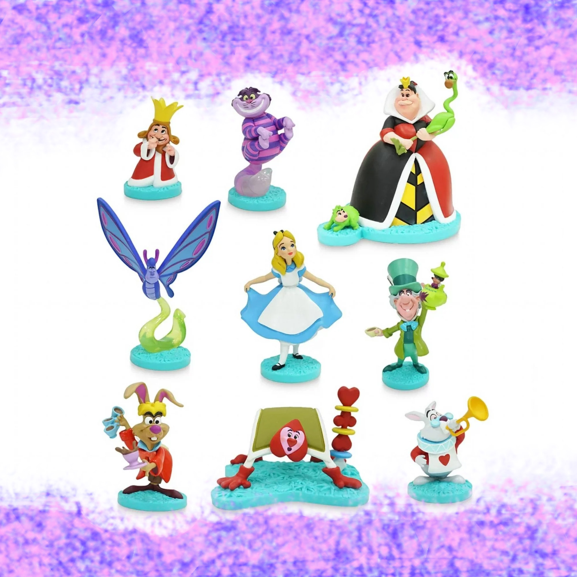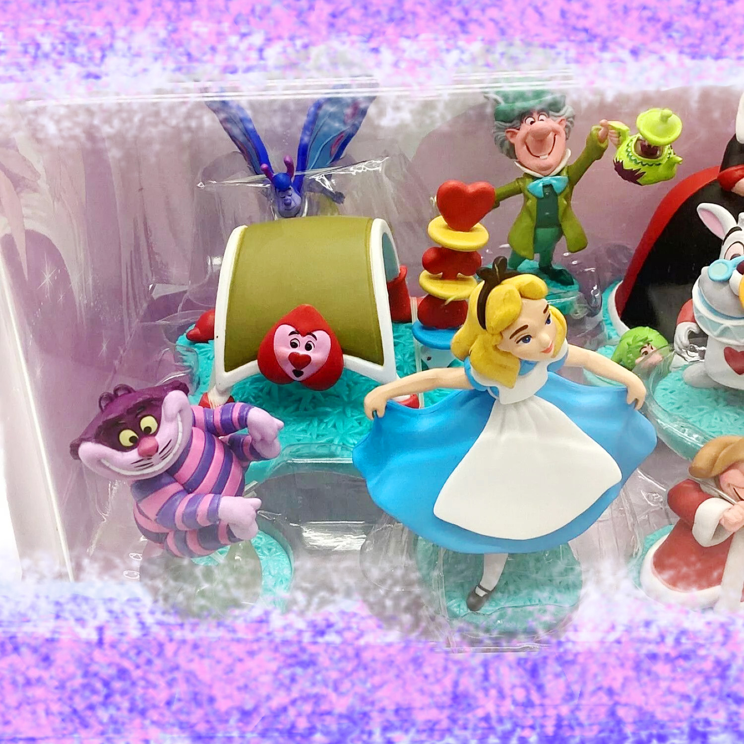 Complete Set is visually breath taking and includes rarest such as the Hookah, Flamingo mallet, Door mouse, Heart card and King of hearts. Make this part of your toy collection today. The bright colors will make your eyes never want to stop appreciating them these are just beyond cute.. Some characters also feature clear effects molded parts. Cheshire transitions from full color to clear.